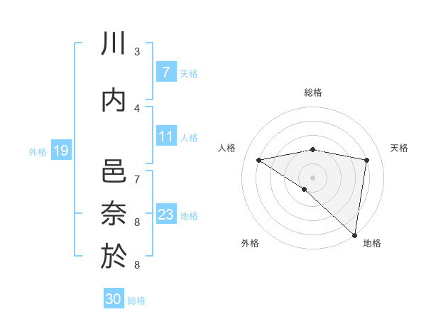川内 邑奈於さんの総格は30画の2点!