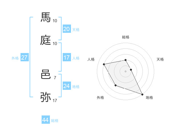 馬庭 邑弥さんを姓名の画数から五運を鑑定