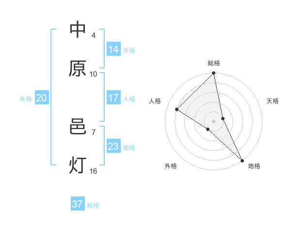 中原 邑灯さんを姓名の画数から五運を鑑定