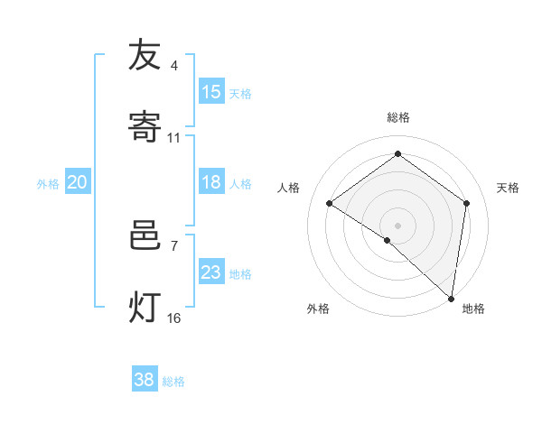 友寄 邑灯さんを姓名の画数から五運を鑑定