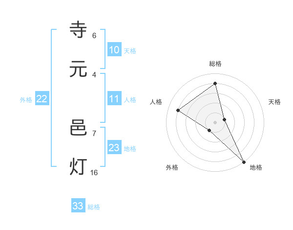 寺元 邑灯さんを姓名の画数から五運を鑑定