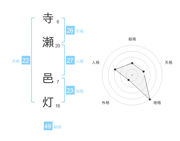 寺瀬 邑灯さんの天格は26画の2点!