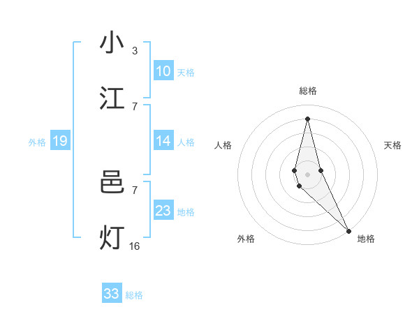 小江 邑灯さんの総格は33画の4点!
