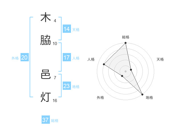 木脇 邑灯さんの総格は37画の5点!