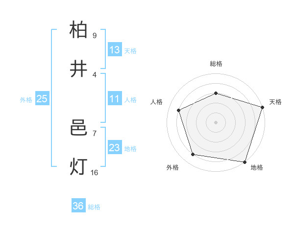 柏井 邑灯さんの天格は13画の5点!