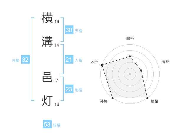 横溝 邑灯さんの総格は53画の3点!