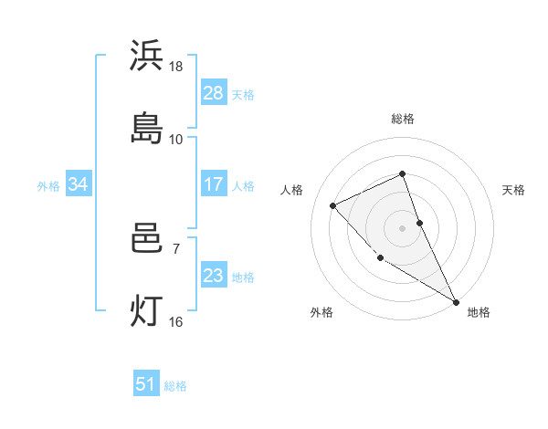 浜島 邑灯さんの総格は51画の3点