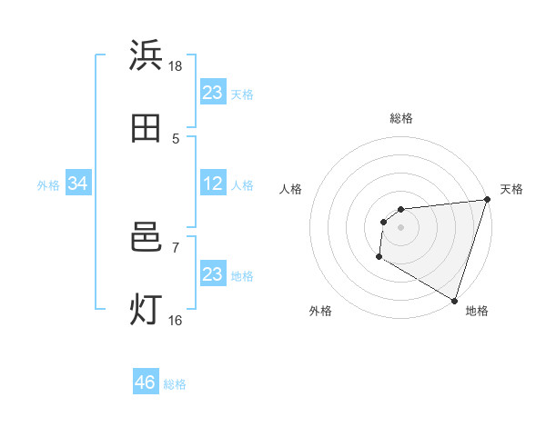 浜田 邑灯さんを姓名の画数から五運を鑑定