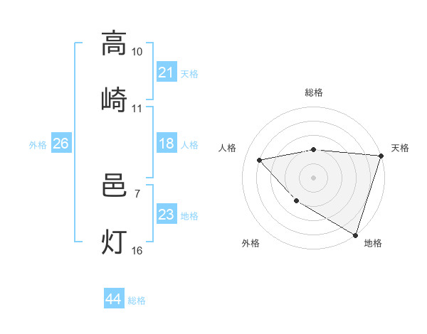 高崎 邑灯さんの総格は44画の2点!