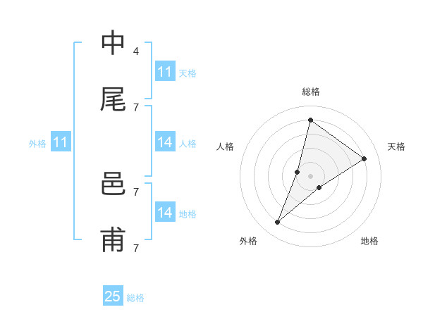 中尾 邑甫さんを姓名の画数から五運を鑑定