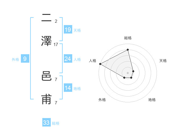 二澤 邑甫さんを姓名の画数から五運を鑑定