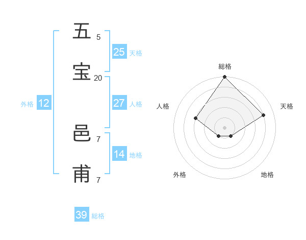 五宝 邑甫さんの総格は39画の5点!