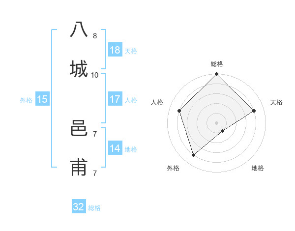 八城 邑甫さんの総格は32画の5点!