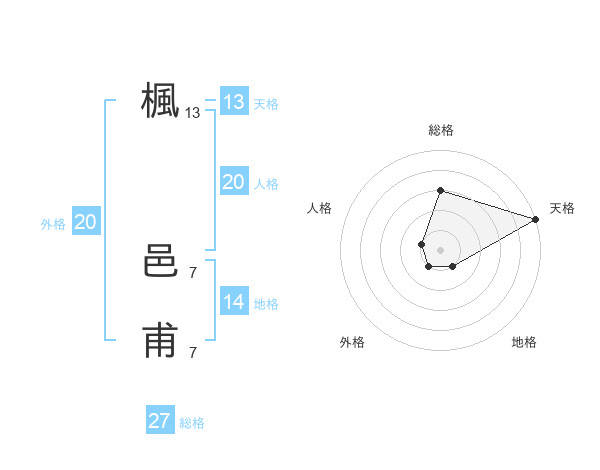 楓 邑甫さんを姓名の画数から五運を鑑定