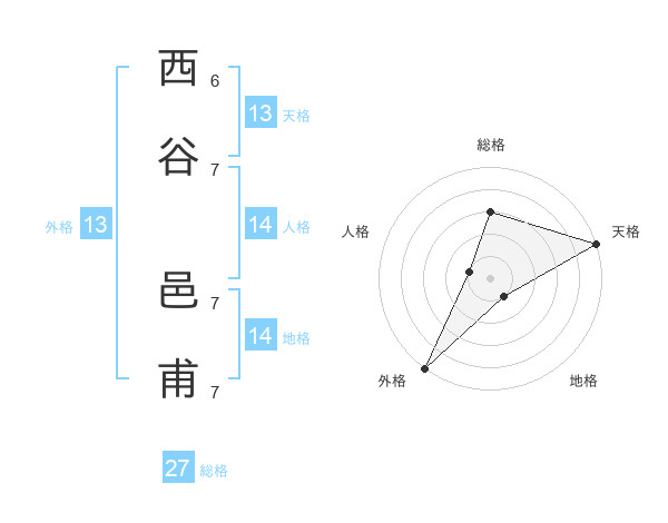 西谷 邑甫さんを姓名の画数から五運を鑑定