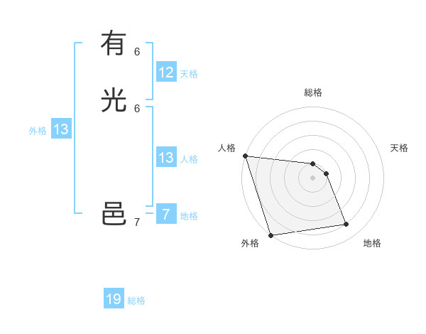 有光 邑さんの外格は13画の5点!