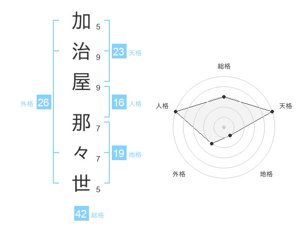 加治屋 那々世さんの天格は23画の5点!