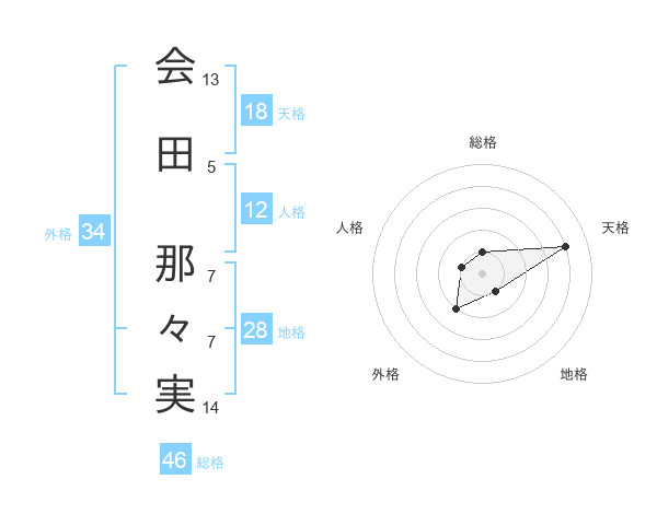 会田 那々実さんの天格は18画の4点!