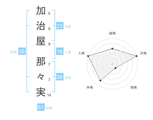 加治屋 那々実さんの天格は23画の5点!