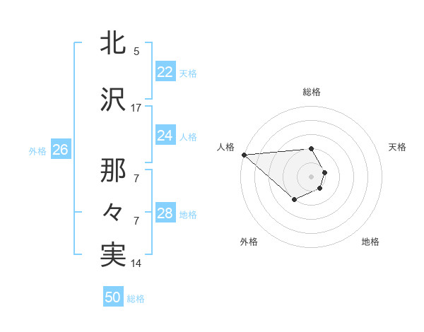 北沢 那々実さんを姓名の画数から五運を鑑定