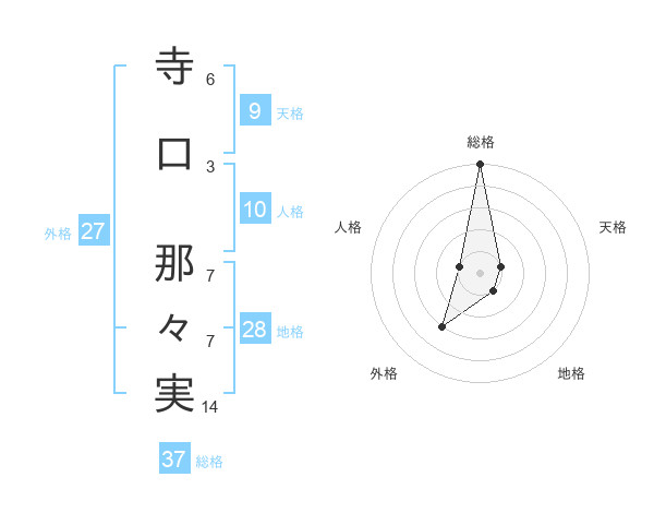 寺口 那々実さんの総格は37画の5点!
