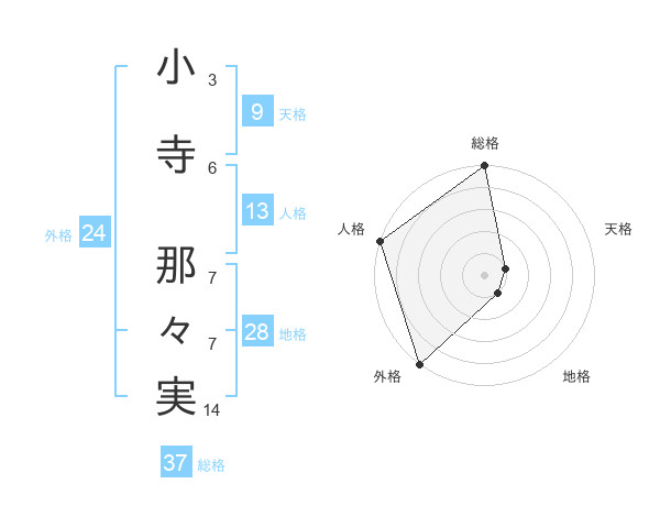 小寺 那々実さんの総格は37画の5点!