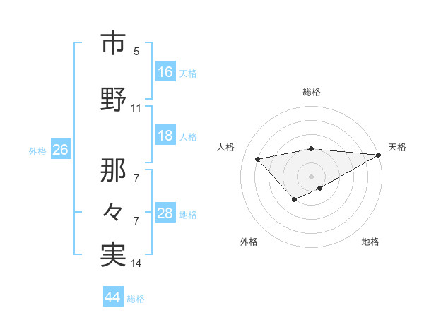 市野 那々実さんの天格は16画の5点!
