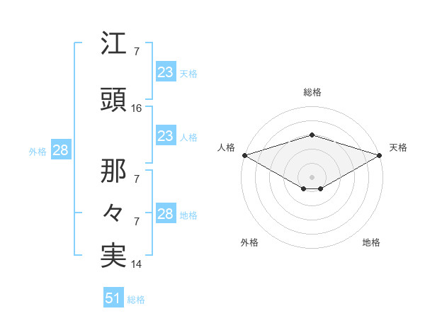 江頭 那々実さんを姓名の画数から五運を鑑定