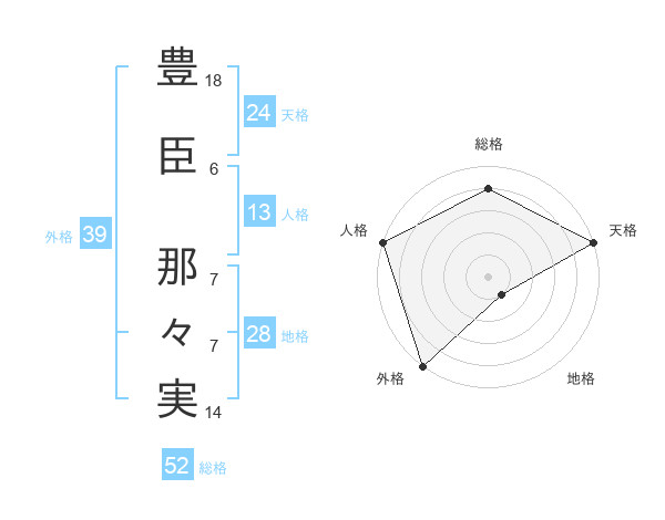 豊臣 那々実さんを姓名の画数から五運を鑑定