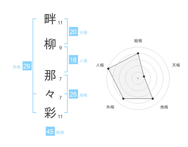 畔柳 那々彩さんの総格は45画の4点!