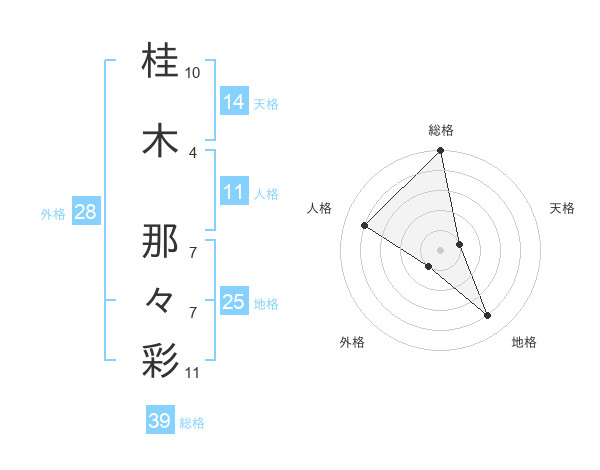 桂木 那々彩さんを姓名の画数から五運を鑑定