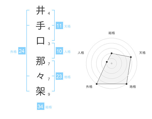井手口 那々架さんを姓名の画数から五運を鑑定