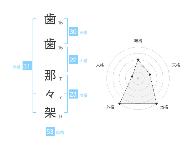 歯歯 那々架さんを姓名の画数から五運を鑑定