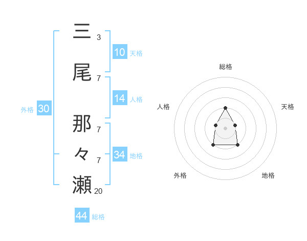 三尾 那々瀬さんの総格は44画の2点!