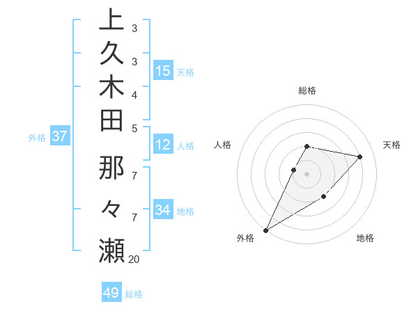 上久木田 那々瀬さんを姓名の画数から五運を鑑定