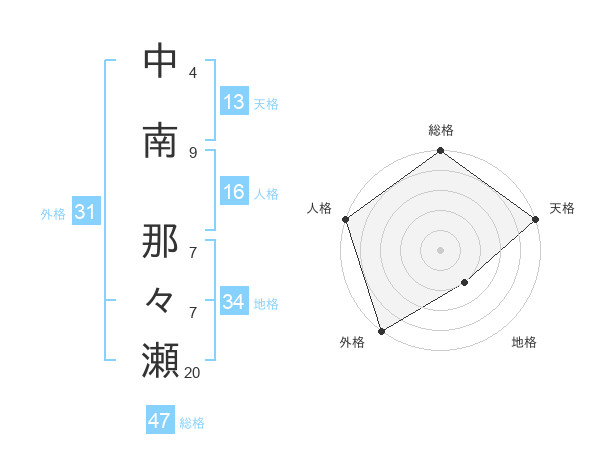 中南 那々瀬さんを姓名の画数から五運を鑑定