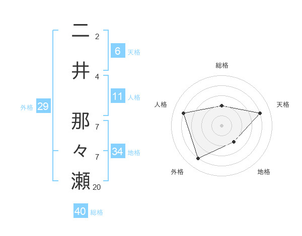 二井 那々瀬さんを姓名の画数から五運を鑑定