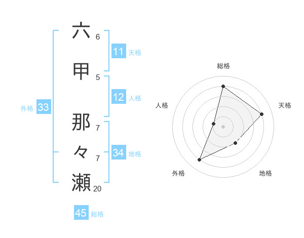 六甲 那々瀬さんの総格は45画の4点!