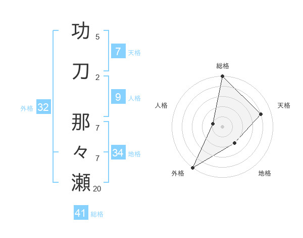 功刀 那々瀬さんを姓名の画数から五運を鑑定