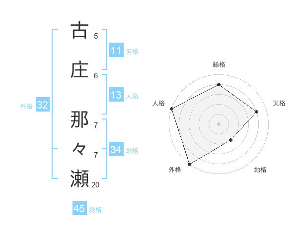 古庄 那々瀬さんの外格は32画の5点!