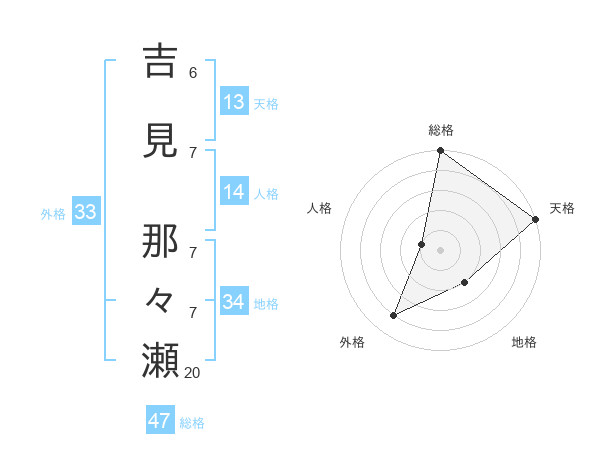 吉見 那々瀬さんを姓名の画数から五運を鑑定