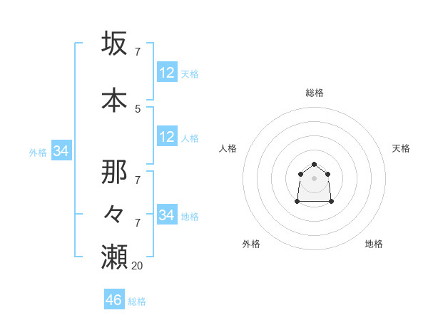 坂本 那々瀬さんを姓名の画数から五運を鑑定