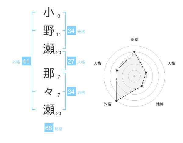 小野瀬 那々瀬さんの総格は68画の4点!