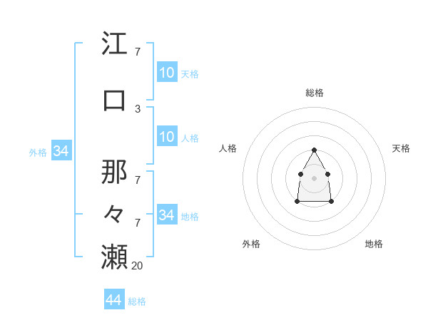 江口 那々瀬さんの総格は44画の2点!