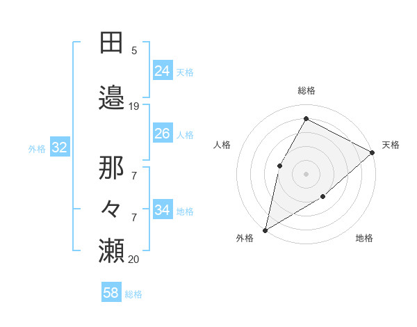 田邉 那々瀬さんの総格は58画の4点!