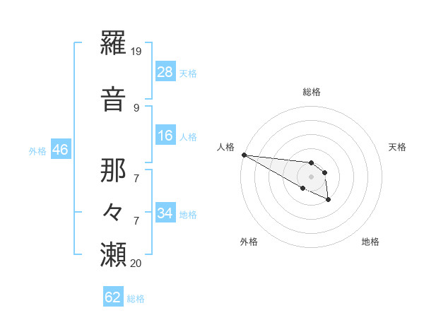 羅音 那々瀬さんを姓名の画数から五運を鑑定