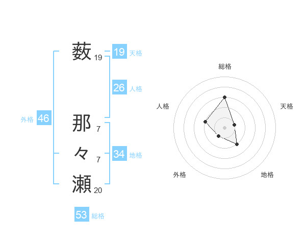 薮 那々瀬さんを姓名の画数から五運を鑑定