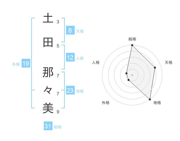 占い結果は姓名判断である以上、良い場合も悪い場合もありますが、決してお名前を誹謗中傷するものでなく、画数の自動計算によって得られたものです。また、本サイトの検索によって得られた鑑定結果で、第三者を誹謗中傷したり名誉を棄損するような行為を禁じます。