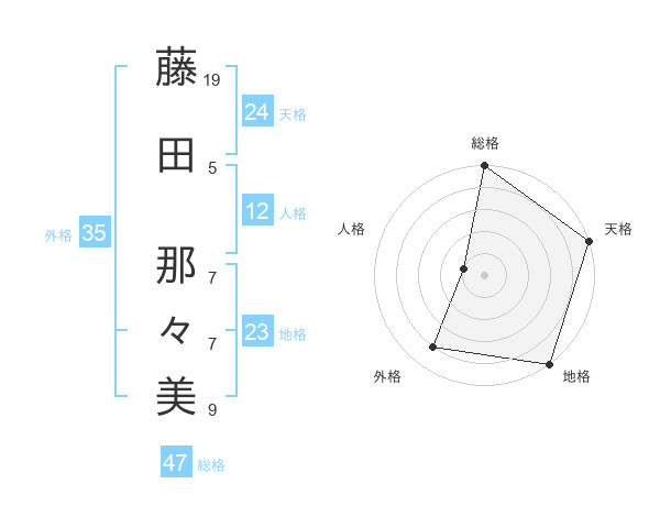 藤田 那々美さんを姓名の画数から五運を鑑定