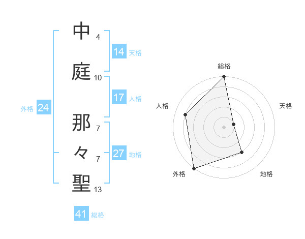 中庭 那々聖さんの総格は41画の5点!
